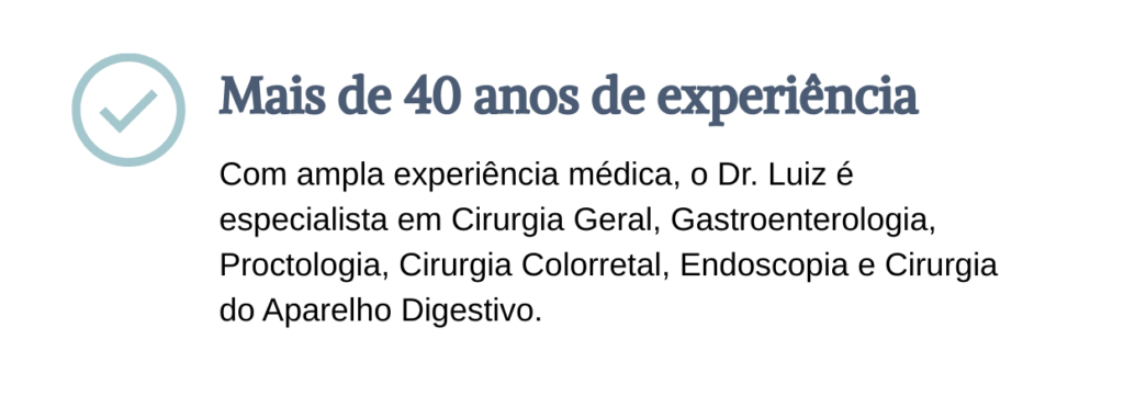 Dr. Luiz Fernando Rossilho de Figueiredo é gastroenterologista, endoscopista e cirurgião com mais de 40 anos de dedicação à medicina no Oeste Paulista. Ao longo de sua trajetória, realizou milhares de cirurgias e endoscopias, sempre guiado pelos valores de respeito, confiança e honestidade.